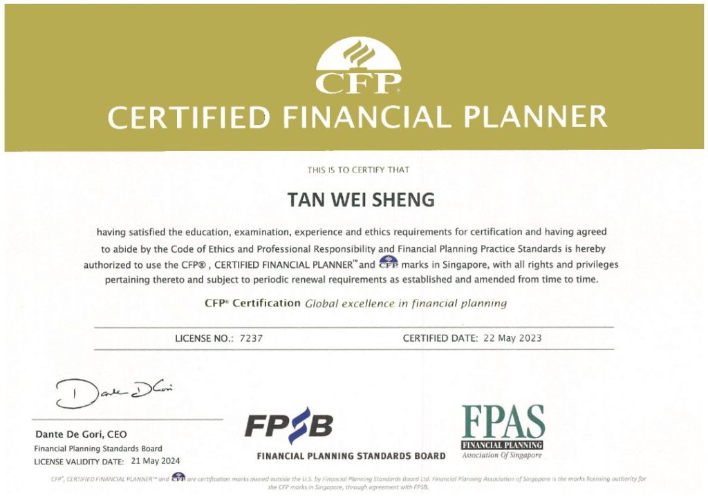 He is also a member of the Financial Planning Association of Singapore, an industry association that is a partner of MoneySENSE, Singapore’s National Financial Education programme.